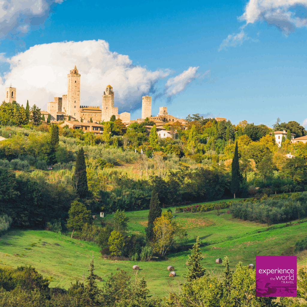 Rising from the Tuscan hills, San Gimignano’s fourteen medieval towers create one of Italy’s most recognisable silhouettes. This UNESCO-listed “Town of Fine Towers” offers cobblestone streets, the frescoed Collegiate Church, and sweeping views from the Torre Grossa. Be sure to sample Vernaccia di San Gimignano, the acclaimed local white wine.